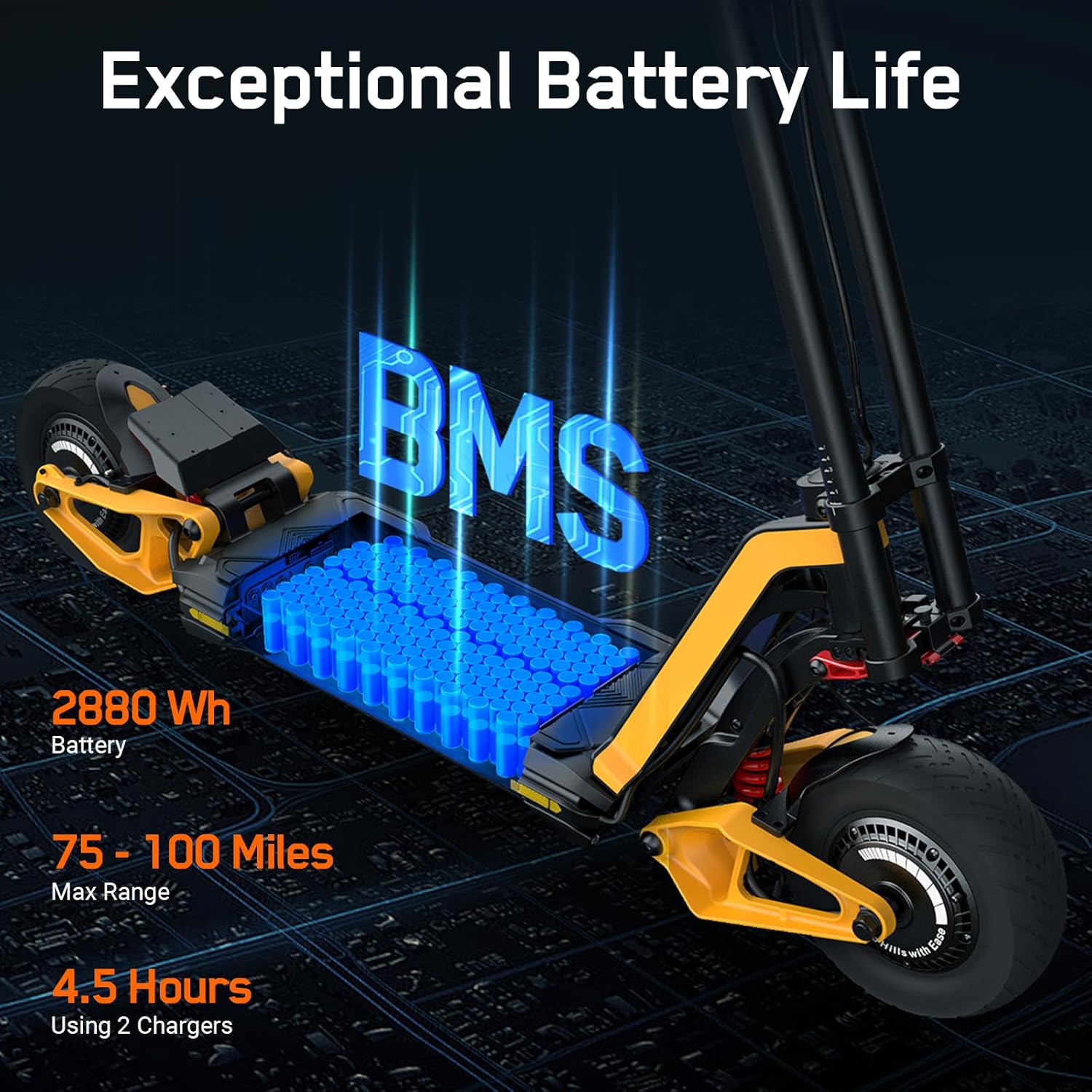 - Rule the Roads: Ignite speed with twin 2000W motors, hitting 68 mph (100km/h) and conquering 50% grade hills. Swift 0-30 mph acceleration for ultimate road dominance
