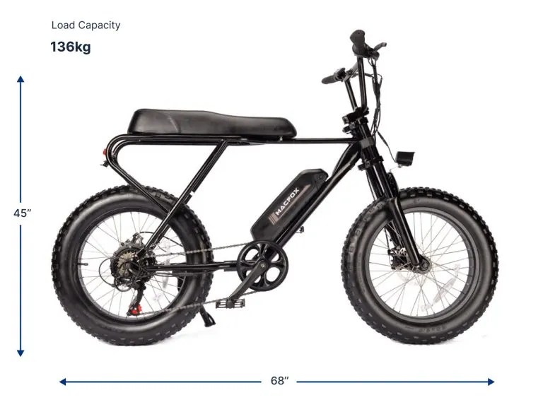 Tyres: 20″ x 4.0 E-bike Rated Fat Tires
